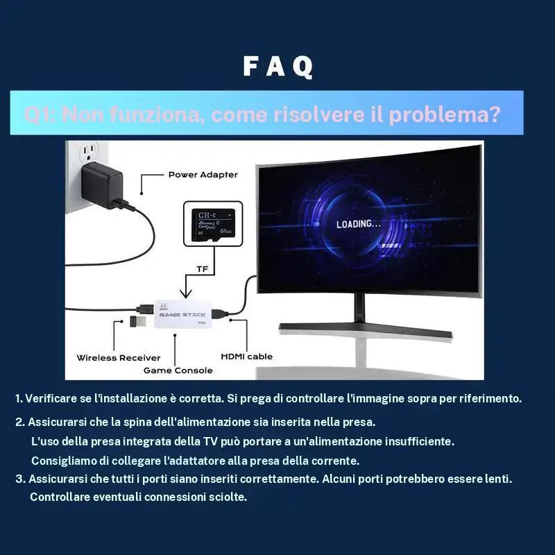 La console GiochiPro combina giochi retrò e titoli moderni. Design elegante e intuitivo, con controlli precisi e compatibilità versatile, ideale per chi ama il gaming ovunque e in qualsiasi momento.
